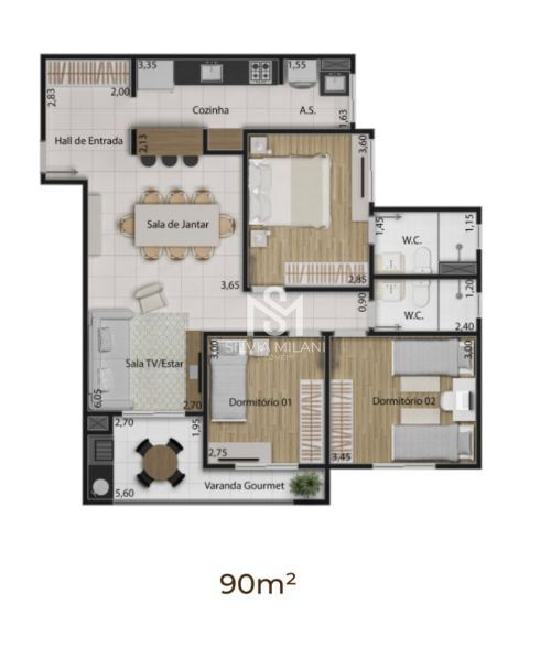 Área útil de 90 metros quadrados e 02 vagas soltas no subsolo