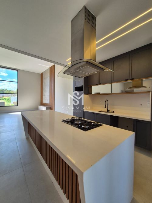 - Cozinha conceito aberto com ilha equipada com cooktop e coifa , com móveis planejados