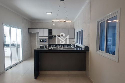 - Cozinha conceito aberto com móveis planejados e equipamentos embutidos ( cooktop, forno, micro-ondas e depurador)